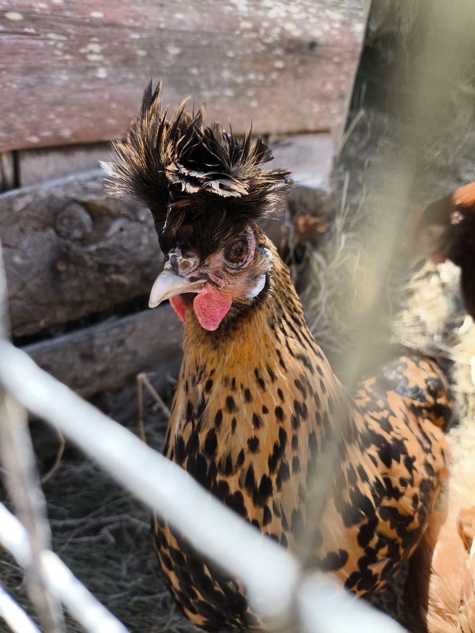 На территории также есть курятник с колоритными курицами, как на фото.