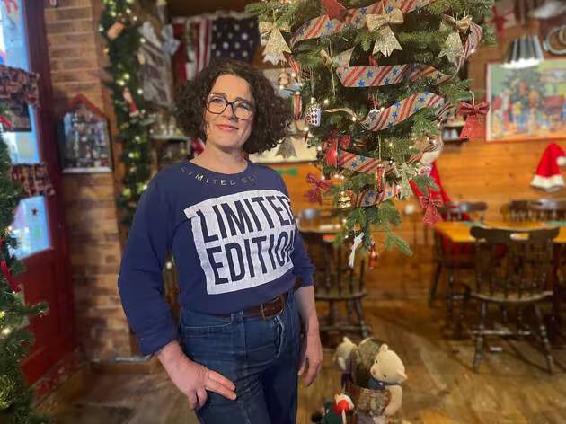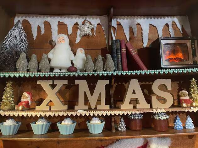 С первых выходных ноября она приступает к украшению ресторана, на установку всего уходит четыре дня. Полки наполнены человечками, крохотными деревцами, они сверкают, мелькают повсюду. Клиенты очень довольны.