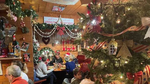 Art Caddy, маленький ресторан в американском стиле в Сен-Мало, украшает интерьеры к Рождеству.